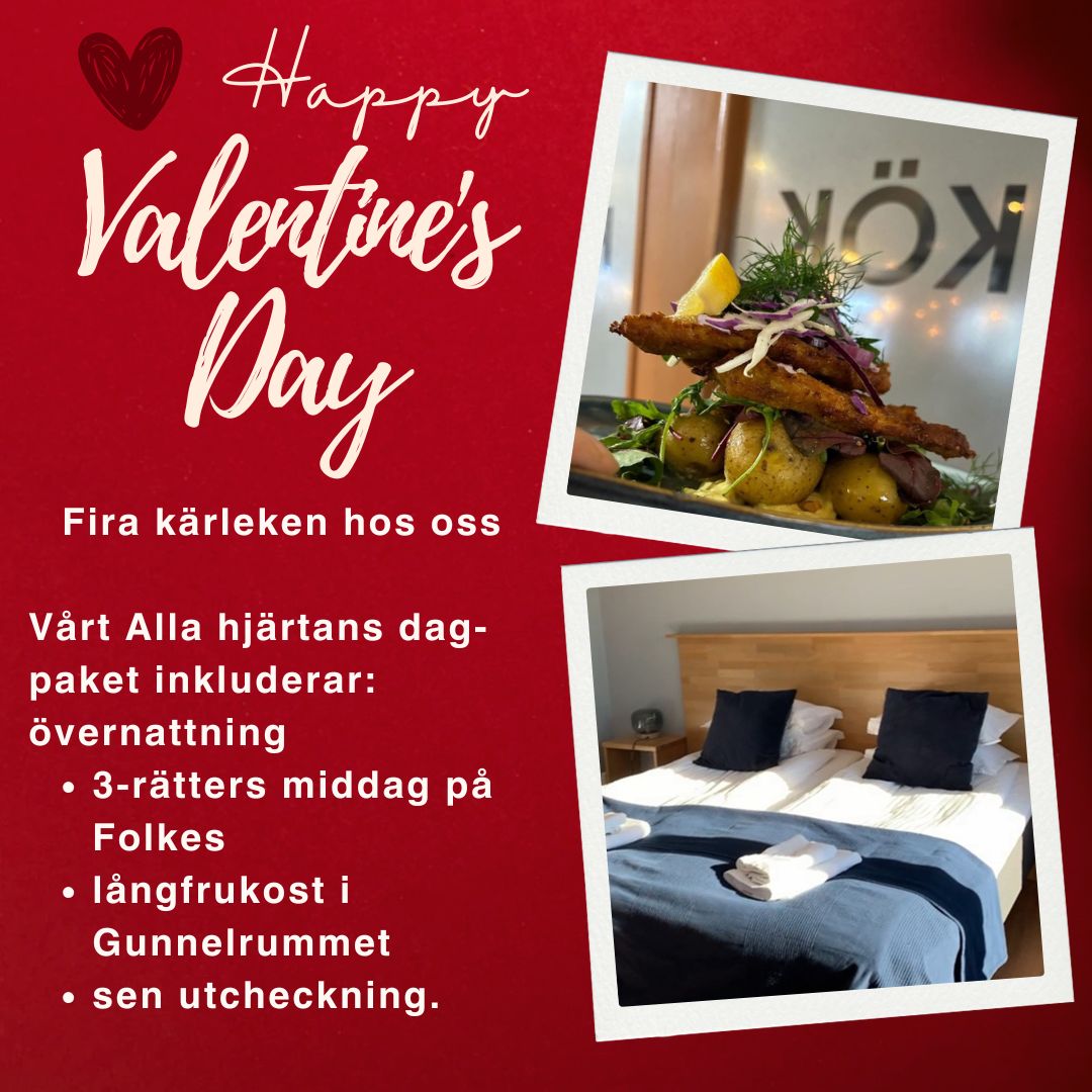 Unna er en härlig övenattning med 3 rätters middag på Folkes Restaurang. På söndag dukar vi upp frukostbuffé i Gunnelrummet. Sen utcheckning gör att ni kan ha kvar rummet ända till kl 13.00.