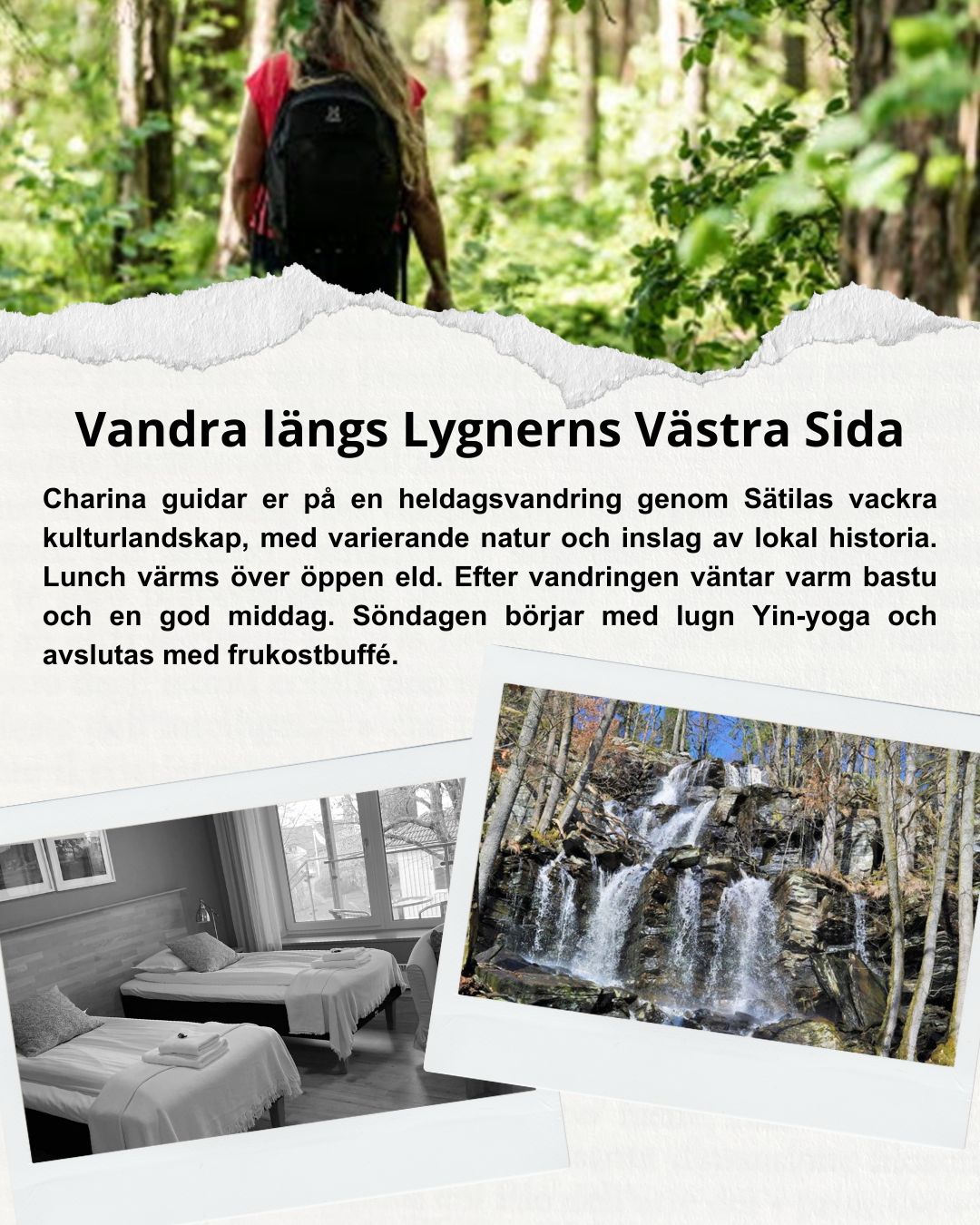 Vi erbjuder ett trivsamt boende med närhet till flera vandringsleder i olika svårighetsgrad, perfekt för både nybörjare och vana vandrare. Utforska ett av de många naturreservaten i området eller boka in vårt populära Fredagsmys – en kväll med god mat, gemenskap och rofylld stämning.